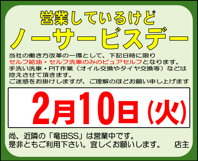 【ノーサービスデー】のお知らせ 菊南SS