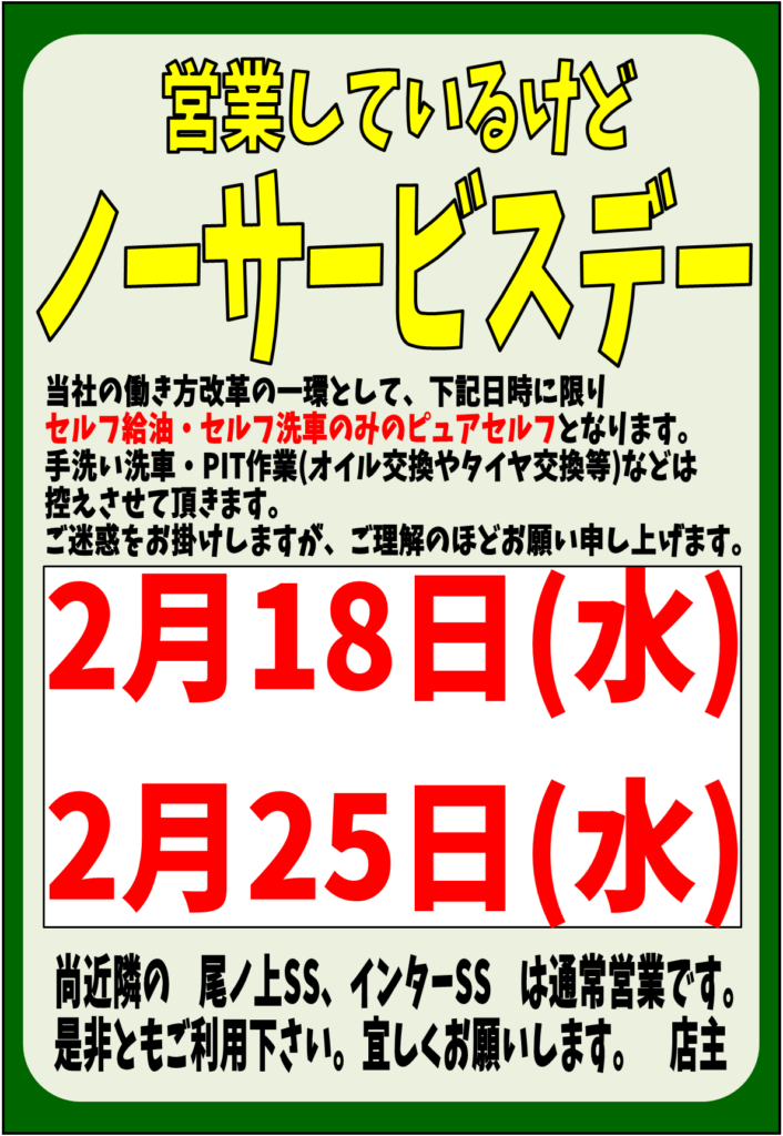 【ノーサービスデーのお知らせ 小峯SS】