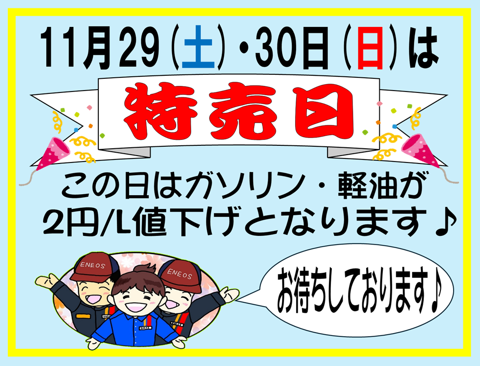 2025.11.28 【週末特売】 上南部SS Dr.Drive上南部SS いつもご利用ありがとうございます。 今年も残りわずかですね…あっというまに師走がやってきます💦 年末年始は何かと忙しい時期です! お車の点検などは早めにしておく事をお勧め致します(^^)/ 無料で安全点検を実施しておりますのでお気軽にお声掛けください☆ ☆お知らせ☆ たくさんの方のご来店をお待ちしております! 一覧へ戻る 前の記事へ 次の記事へ