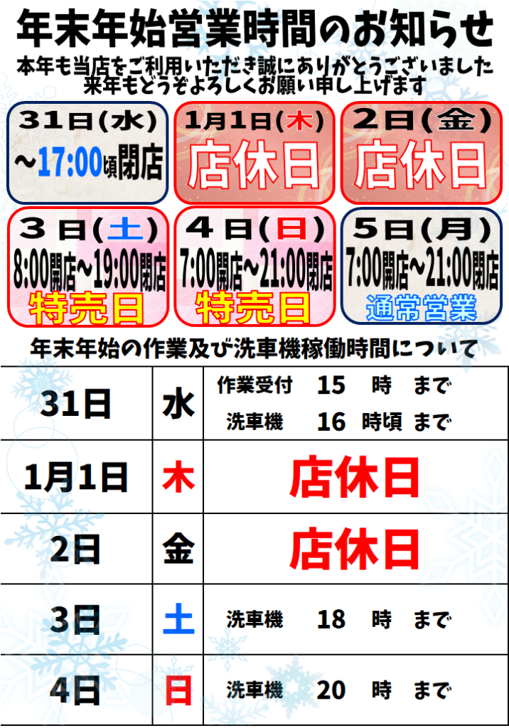 【年末年始のお知らせ】