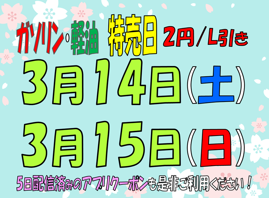 ガソリン・軽油 特売日!