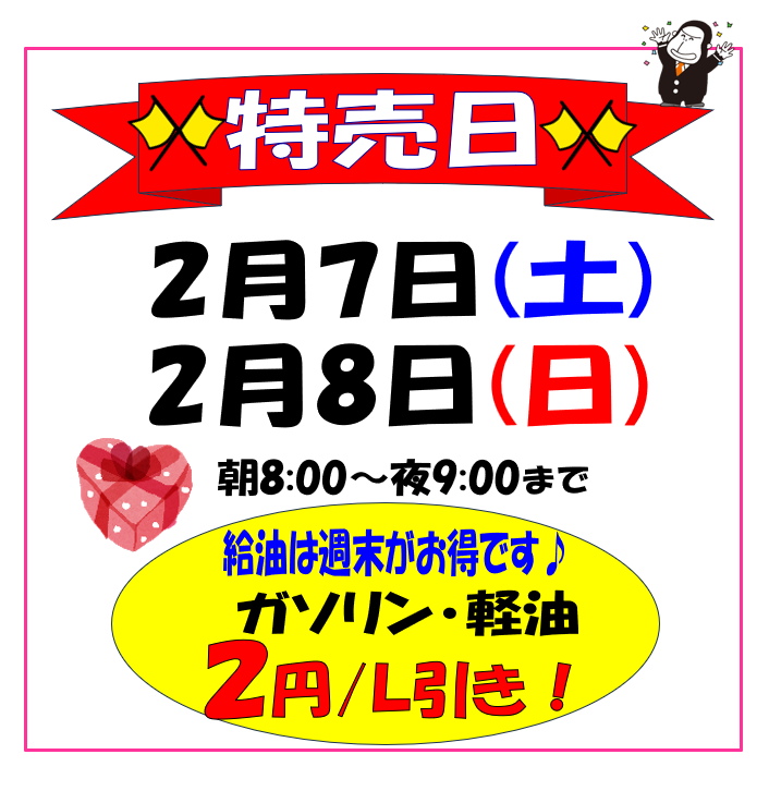 2026.02.06 特売日のお知らせ♪ 熊本インターSS Dr.Drive熊本インターSSお知らせ いつもご利用いただき誠にありがとうございます。 エムロード 熊本インターSSからのお知らせです。 特売日♪ スタッフ一同、皆さまのご来店を心よりお待ちしております。 お得な春の車検フェア♪ 車検は満了日の2ケ月前から受けられます。 まずは無料お見積りに是非ご来店ください m(__)m 一覧へ戻る 前の記事へ 次の記事へ