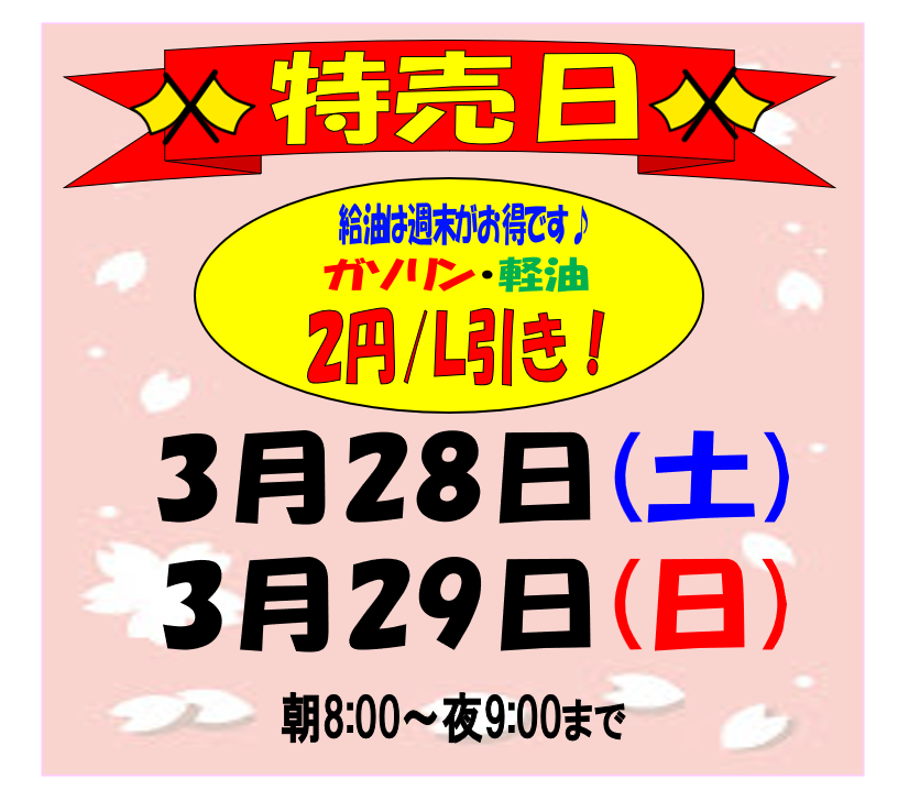 2026.03.27 特売日のお知らせ♪ 熊本インターSS Dr.Drive熊本インターSSお知らせ いつもご利用いただき誠にありがとうございます。 エムロード 熊本インターSSからのお知らせです。 特売日♪ スタッフ一同、皆さまのご来店を心よりお待ちしております。 一覧へ戻る 前の記事へ 次の記事へ