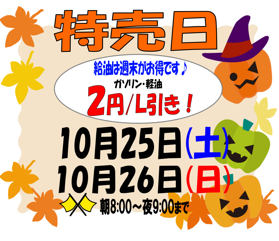 2025.10.24 特売日のお知らせ♪ 熊本インターSS Dr.Drive熊本インターSSお知らせ いつもご利用いただき誠にありがとうございます。 エムロード 熊本インターSSからのお知らせです。 特売日♪ スタッフ一同、皆さまのご来店を心よりお待ちしております。 ★お得なモバイルエネキー★ 一覧へ戻る 前の記事へ 次の記事へ