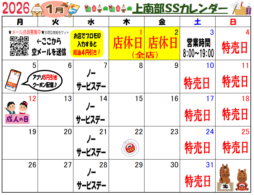 1日・2日はエムロード全店、店休日でご迷惑をお掛けしてます。