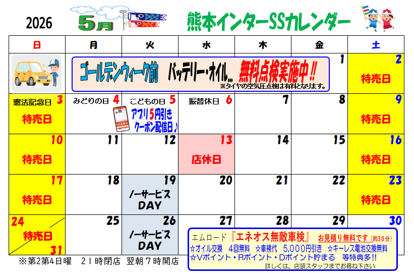 5月の行事カレンダー 熊本インターSS