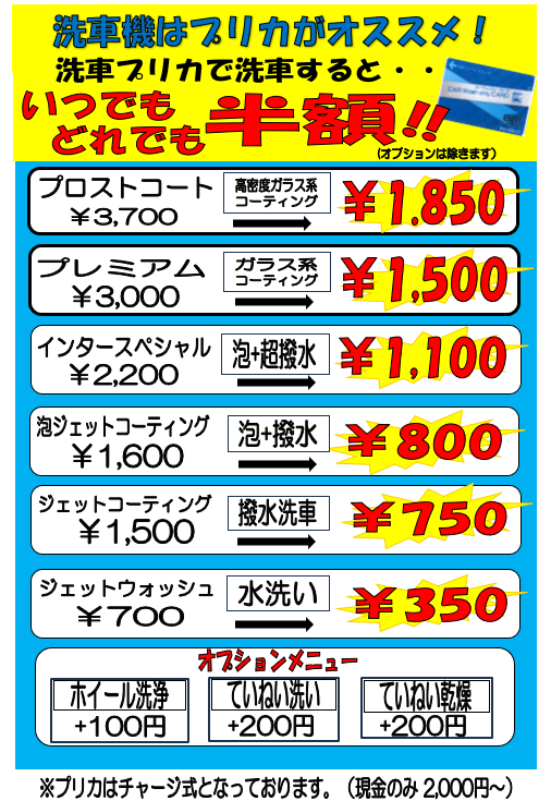 洗車機は是非お得なプリカで♪